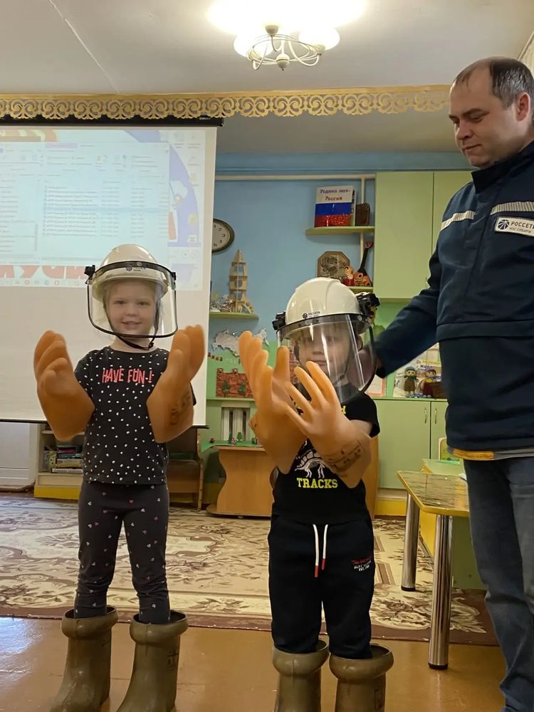 Но самым интересным стал осмотр защитной экипировки! Иван Сергеевич принес настоящие атрибуты своей профессии: сапоги, перчатки и каску. Ребята были в восторге, ведь всё это можно было примерить и почувствовать себя настоящими энергетиками!